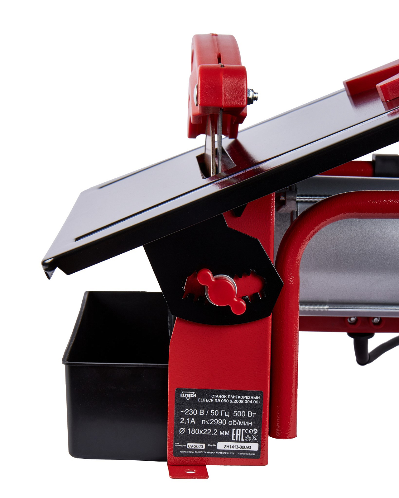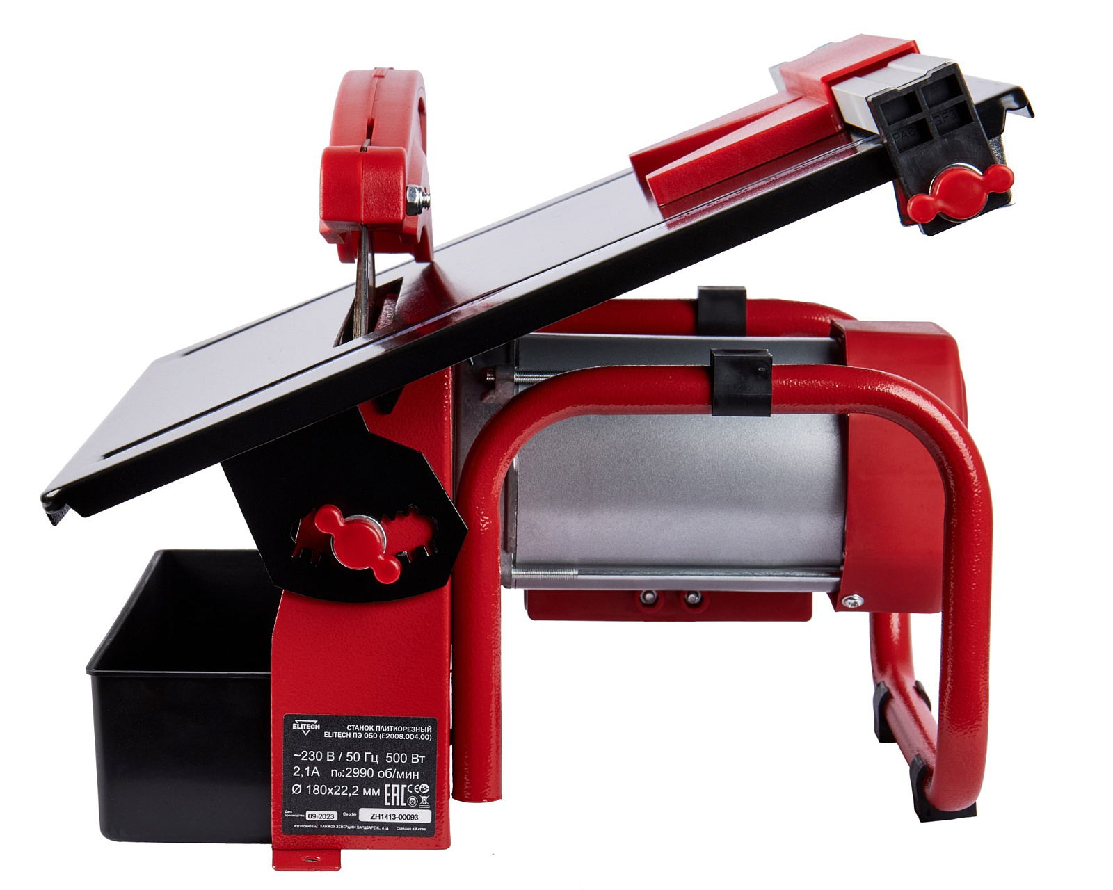 Плиткорезный станок с размерами диска 180х22,2 мм, мощностью 500 Вт, работает от однофазной сети переменного тока напряжением 230 В частотой 50 Гц.