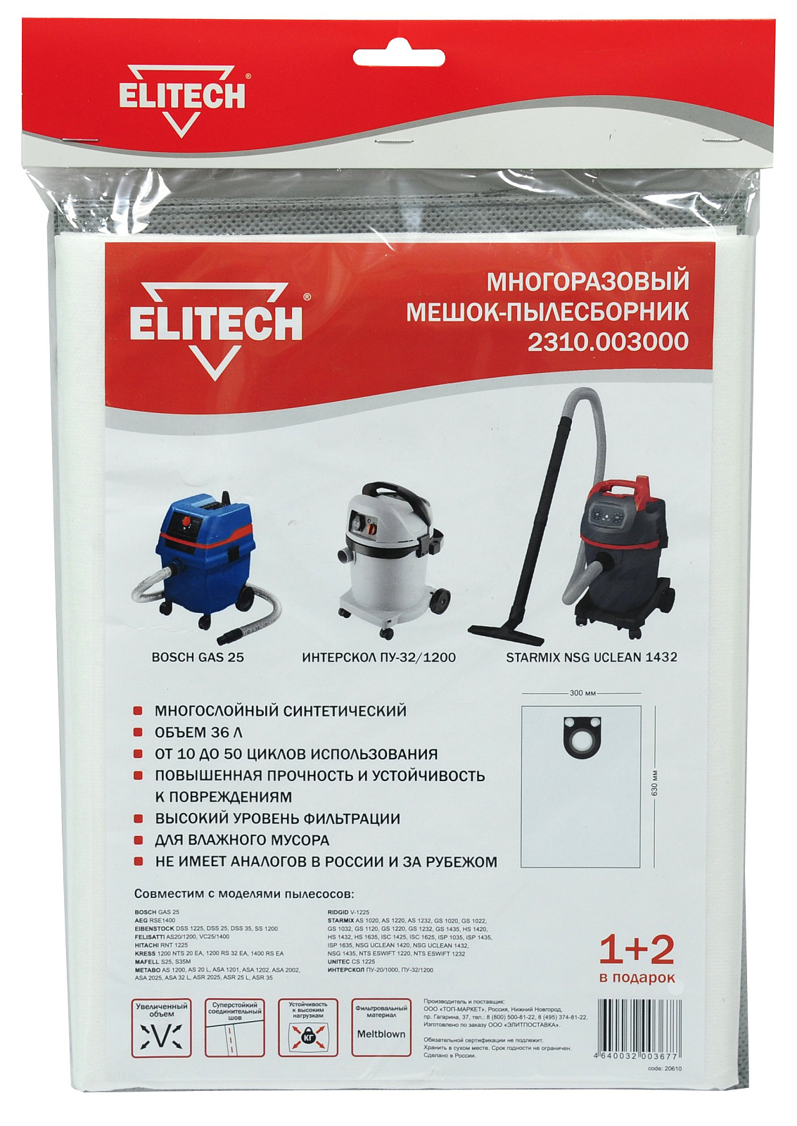 Многоразовый мешок-пылесборник 1+2 шт. для пылесосов BOSCH GAS 25