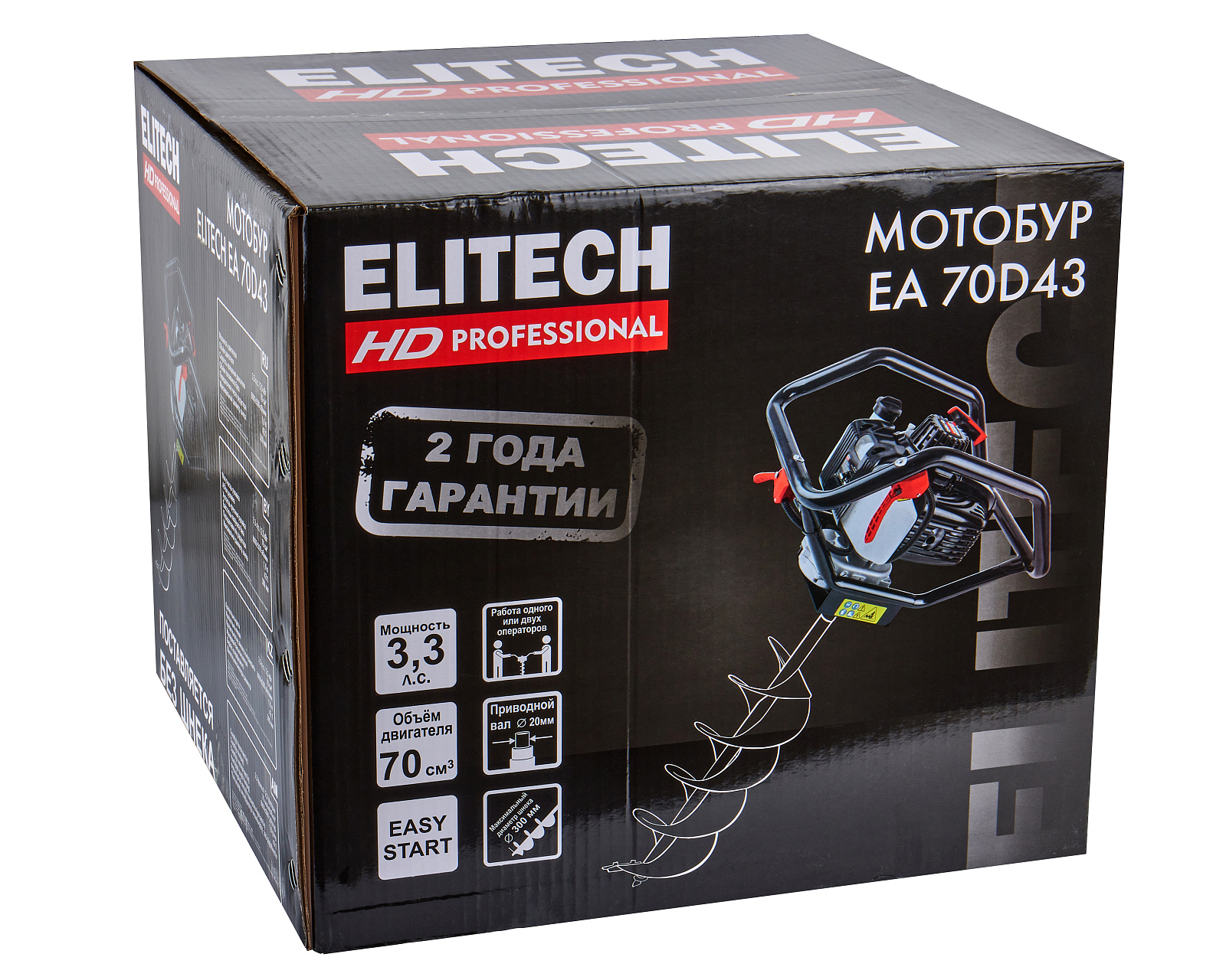 Мотобур ELITECH EA 70D43 — это мощный и надежный инструмент для профессионального и бытового использования. Данная модель предназначена для бурения отверстий в грунте под установку столбов, посадку деревьев, а также для создания лунок во льду.