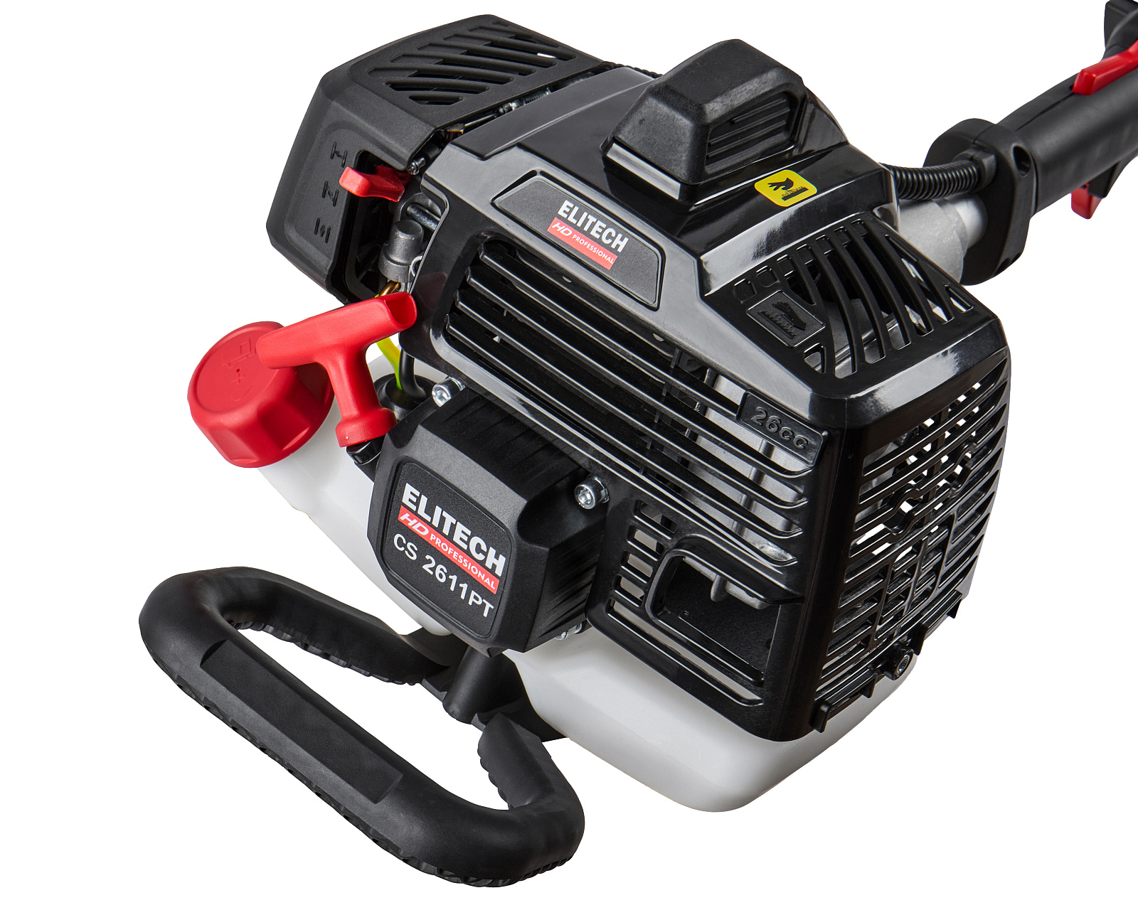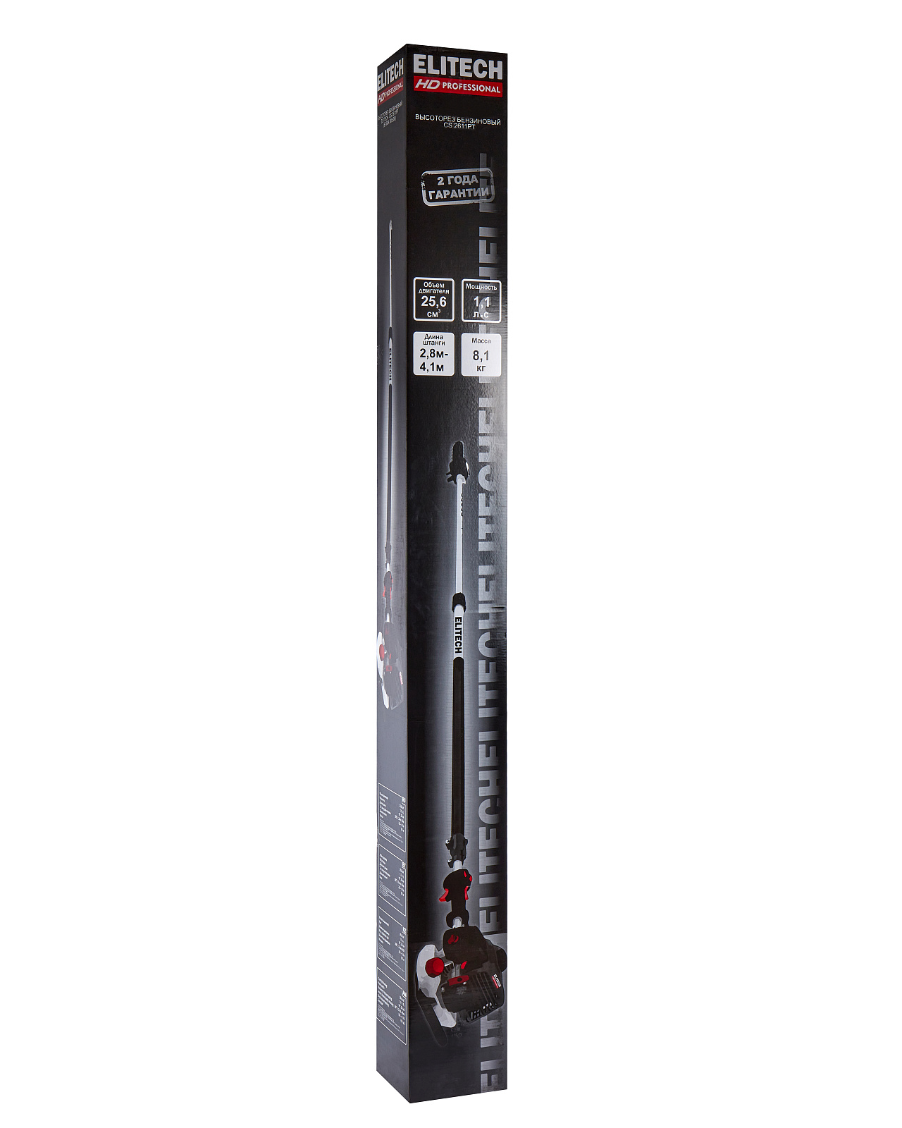 Высоторез бензиновый ELITECH HD CS 2611PТ предназначен для профессионального ухода за кронами деревьев и кустарников на значительной высоте без использования лестниц. Данная модель эффективно справляется с обрезкой веток в труднодоступных местах благодаря телескопической штанге, регулируемой в диапазоне 2.8–4.1 метра.