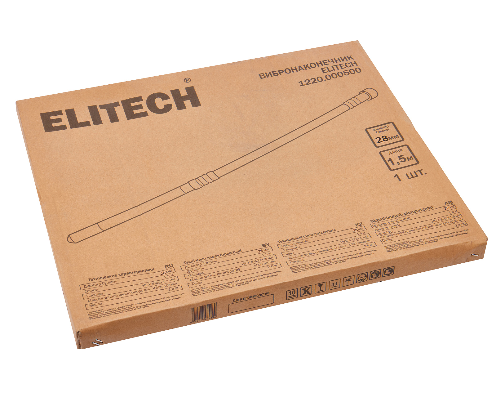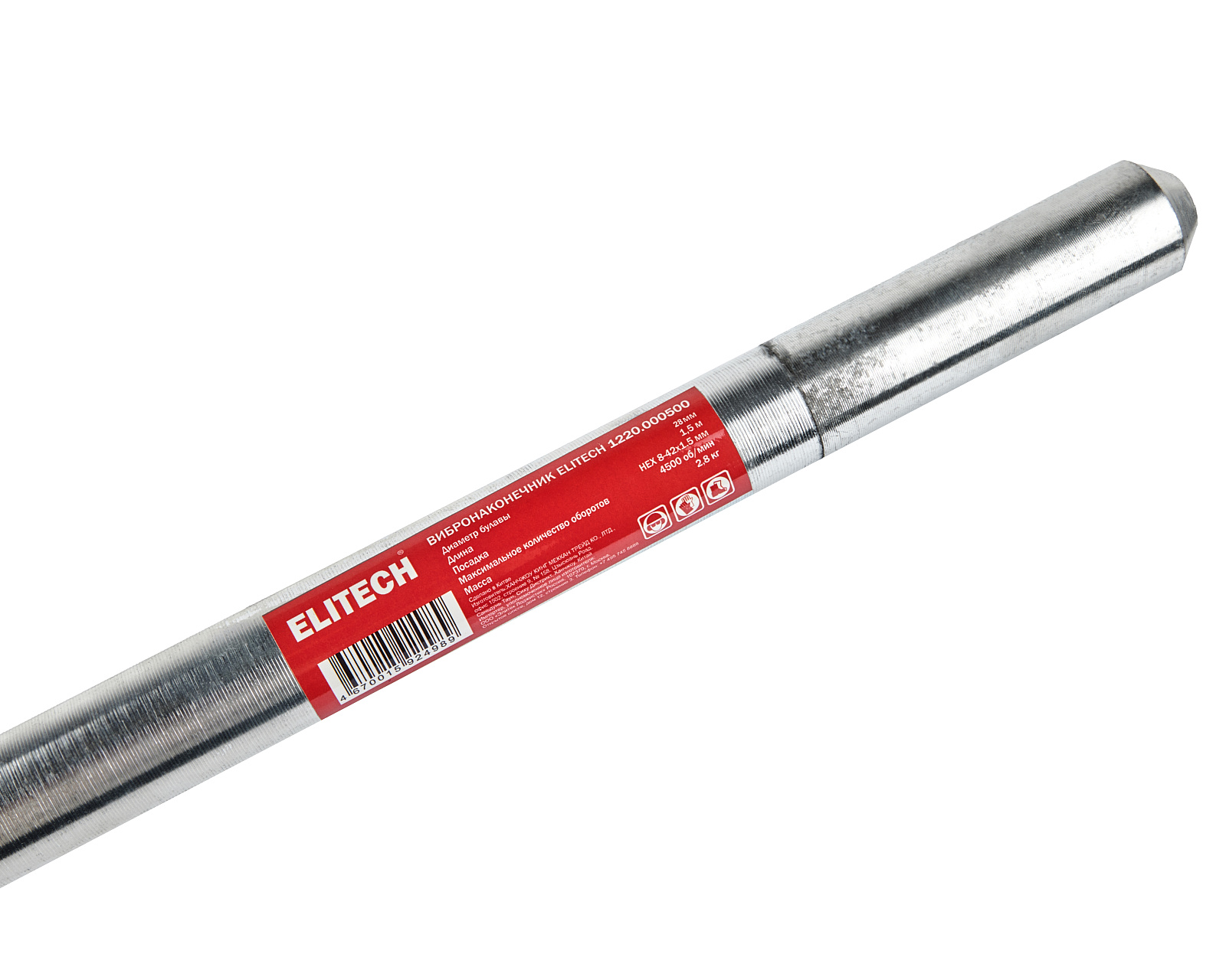 Вибронаконечник для бетона ELITECH HEX8-42х1.5мм, фбулавы-25мм, длина 1.5м, 3кг представляет собой незаменимую оснастку для проведения строительных работ. Данное оборудование предназначено для уплотнения бетонных смесей при заливке фундаментов, стен и колонн, обеспечивая удаление излишков воздуха.