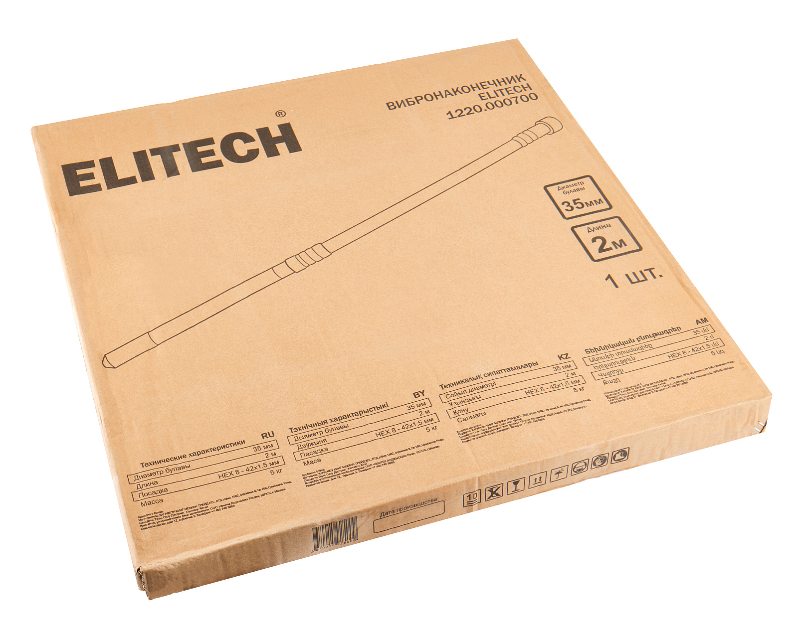Вибронаконечник для бетона ELITECH HEX8-42х1.5мм,фбулавы-35мм,длина 2м,5кг предназначен для уплотнения бетонных смесей при заливке монолитных конструкций, фундаментов и перекрытий. Данное оборудование эффективно удаляет пузырьки воздуха, обеспечивая высокую прочность и долговечность готовых сооружений.